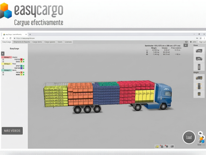Además, el sistema tiene en cuenta las restricciones que se indiquen para calcular la ubicación de los artículos. También es posible diferenciar los artículos por grupos dependiendo del destino que tengan. Por último, la aplicación también aplica las restricciones de peso necesarias a los vehículos seleccionados.