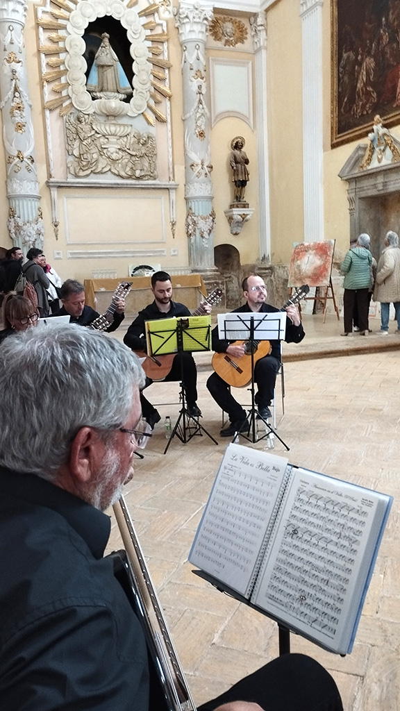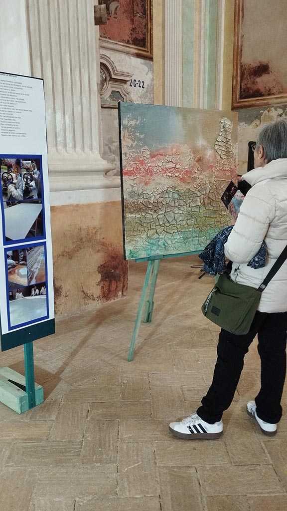 Durante el proceso previo y en paralelo con la acción formativa, vinculada al proyecto europeo InclusiVET y en el que participan personas con y sin discapacidad, el grupo visitó la Cartuja para conocer de primera mano el legado pictórico de Fray Manuel Bayeu y realizó una salida por el entorno natural de Los Monegros para identificar y recoger sedimentos utilizados posteriormente en la creación de pigmentos naturales que se han convertido en los protagonistas de esta muestra.